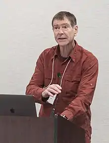 ![]() Postlethwait at the 2018 NIH Comparative Medicine Resource Director's Meeting | |