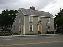 The house is a 2+1⁄2 story wood frame saltbox style house, sheathed in wooden clapboards. There are two main rooms, one on either side of a central chimney, on each of the two floors, and there are two further rooms in the lean-to section on the first floor. The main facade is three bays wide with the entry in the center. The doorway is framed by pilasters and topped by an entablature and triangular pediment. A similarly treated entrance is located at the southeast corner of the building.[3]