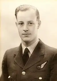 He joined the Specialloids engineering company as an apprentice and could have remained there as an exempt employee through the war, but in 1941 he joined the Royal Air Force as a navigator to more actively contribute to the war effort. Consistently rated exceptional, he flew in night fighters and was commissioned in January 1942. For his splendid work in this most dangerous and exacting branch of the service he was awarded the Distinguished Flying Cross (DFC) in 1944 flying Mosquitos with No. 604 Squadron. Promoted to Squadron Leader, he served in India and the Far East and, uniquely for a navigator, became a flight commander.