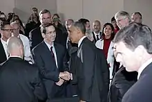 Mascola and his colleague Barney Graham led the partnerships[6][32][33] between the VRC and Moderna to design and develop a successful mRNA vaccine that became mRNA-1273, authorized for use (EUA) in December 2020[34] and with AbCellera and Eli Lilly[35] to isolate a SARS-CoV-2 monoclonal antibodies[36] Ly-CoV555 (bamlanivimab) authorized for use in November 2020 and bebtelovimab authorized for use in February 2022.[37]