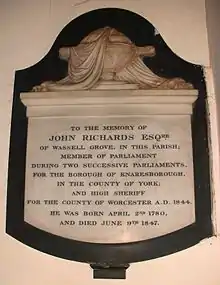 St John the Baptist Church, Hagley, memorial to John Richards MP