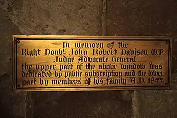 Plaque to John Robert Davison, Durham Cathedral