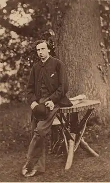 After a home education, he was sent to Harrow School. He was an exceptionally studious boy and his performance at school pleased his father.[2] He later attended the University of Edinburgh and Trinity College, Cambridge.[1] At Cambridge, he formed a close and lasting friendship with T. J. Cobden-Sanderson, who shared his irreligious views. Both left Cambridge without taking a degree;[3] Amberley's departure in February 1863 was due to his dislike for Cambridge's social tone and focus on mathematics.[1]