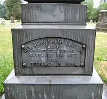 In 1839, Griffin was married in Saint Louis, Missouri, to Desiré C. Smith, who would die in 1884. He then married Lina Harvey Kenyon in Three Oaks, Michigan.[1] Griffin's sister-in-law Rachel Jane Smith married fellow missionary Henry H. Spalding as Spalding's second wife.[5] John Smith Griffin died on February 5, 1899, and is buried at Hillsboro Pioneer Cemetery in Hillsboro, Oregon.[6]