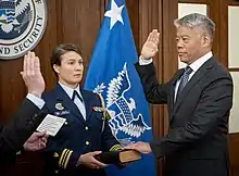 On April 12, 2021, President Joe Biden announced his intent to nominate Tien to be the United States deputy secretary of homeland security under Alejandro Mayorkas.[12] On April 22, 2021, his nomination was sent to the Senate.[23] On June 17, 2021, Tien was confirmed in a full Senate vote by 60–34.[24] He was sworn in as Deputy Secretary on June 24, 2021.[13][25]