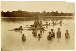Describing his time in Ambae he writes in his diary held in the Royal Society of Tasmania about gaining the confidence of subjects frightened by his camera by first showing them the view of boats on the sea on its ground glass, to the people’s delight.[32]