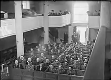 The chapel was built with a double-decker pulpit, which was common at the time, and is lighted by an octagonal lantern window to reduce the amount paid in window tax. In addition to meetings and worship, the New Room was used as a dispensary and schoolroom for the poor people of the area.[10] The pews and benches were made from old ship timber.[11] The Baldwin and Nicholas Street Methodist societies combined to form the United Society, which met at the New Room from 3 June 1739.[12] Wesley insisted that meetings at the New Room should only be held outside of Anglican church hours as he wanted Methodism to complement rather than compete with Anglican worship.[12]