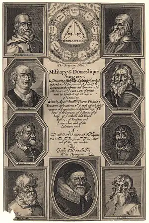 Frontispiece of the 1639 edition of Military and Domestic Surgery by John Woodall.[2]