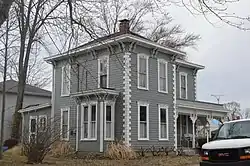 John and Caroline Stonebraker House is a historic home located at Hagerstown, Wayne County, Indiana. It was built about 1875, and is a two-story, "L"-plan, Italianate style frame dwelling with a bracketed hipped roof. It is clad in Dutch-lap board with wooden quoins at each corner. It features a wraparound Eastlake movement style porch added about 1890.[2]:5