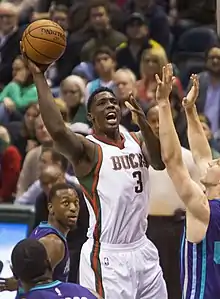 On June 26, 2014, O'Bryant was selected with the 36th overall pick in the 2014 NBA draft by the Milwaukee Bucks.[5] On July 30, 2014, he signed with the Bucks after averaging 8.2 points in five Summer League games for the team.[6] On October 9, he suffered a grade III sprain of the medial collateral ligament (MCL) in his right knee.[7] The injury ruled him out of the first 25 games of the season, as he made his debut for the Bucks on December 17.[8] On December 26, he scored a season-high 12 points in a 107–77 win over the Atlanta Hawks.[9]
