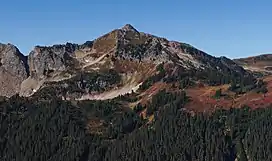 Johnson Mountain is a 6,721-foot (2,049-metre) mountain summit located in the Glacier Peak Wilderness of the North Cascades in Washington state.[2] The mountain is situated in eastern Snohomish County, in the Mt. Baker-Snoqualmie National Forest. Its nearest higher peak is White Mountain, 3.3 mi (5.3 km) to the northeast, along with Indian Head Peak 3.38 mi (5.44 km) to the east.[1] Precipitation runoff from the mountain drains into tributaries of the Sauk River. The mountain's name honors Mackinaw Johnson, a prospector who had a cabin in the vicinity.[3]