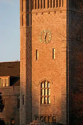 Johnston Hall at the University of Guelph was named after William Johnston (1848–1885) who was the founder and first principal of the Ontario Agricultural College from 1874 to 1879. Johnston Hall was built in 1931 as a student residence and home of administrative offices.[1] Johnston Hall is the second building that opened in 1932 as the first building, the Italianate-style Moreton Lodge, was demolished in 1928 - this is represented by the portico which resides on Johnston Green. The Portico was the front entrance to the F.W. Stone Farmhouse which was part of old Johnston Hall.[2] During the Second World War, both Johnston Hall and Johnston Green served as headquarters for the Royal Canadian Air Force. Today, Johnston Hall is a symbol and landmark of the agricultural college and the University of Guelph.[3]