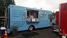 Jojo operates from a food cart in southeast Portland's Creston-Kenilworth neighborhood and a brick and mortar space in northwest Portland's Pearl District.[3] The business specializes in fried chicken sandwiches.[4] The menu has also included biscuits and gravy and milkshakes.[5]