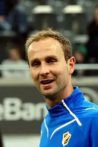 In his second season with the club he scored the decisive goal when Malmö claimed the 2004 Allsvenskan championship. When Niklas Skoog's penalty was saved by the goalkeeper, Høiland scored on the rebound, when Malmö won 1–0 against Elfsborg, while Halmstads BK who were leading the league ahead of the decisive match only managed a 1–1 draw against IFK Göteborg.[5] Høiland was loaned out to the Bundesliga side 1. FC Kaiserslautern in January 2006, until the end of the 2005–06 Bundesliga season.[6] The German side had an option to buy Høiland, but Høiland did not want to continue to play in the club that was relegated from Bundesliga. He returned to Malmö, but stated that his dream was to continue playing in one of the big leagues in Europe.[7] In March 2005, Høiland signed a new three-year contract-extension with Malmö FF.[8] He did however returned to Norway after eight years abroad in August 2007, when he transferred to Stabæk.[9] In his first season with Stabæk, the club finished second.[10] The next season, Stabæk won the Tippeligaen, with Høiland playing regularly at the right back.[11] After winning a bronze-medal with Stabæk in the 2009 season,[10] Høiland was used as a centre-back in the 2010 season. His contract with Stabæk expired after the 2010 season,[11] and he followed head coach Jan Jönsson to Rosenborg where he became Jönsson's first signing as head coach of Rosenborg.[12] Høiland signed a two-year-long contract with Rosenborg in December 2010.[11]