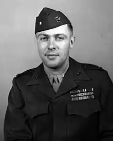 His battalion participated as the part of 1st Marine Division in the bloody Battle of Peleliu in September 1944 and received Navy Commendation Medal with Combat "V" and Navy Presidential Unit Citation for his service there.[2][5]