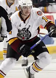 He was drafted by the Atlanta Thrashers in the 4th round, 116th overall, of the 2005 NHL Entry Draft.[2] His first National Hockey League goal was scored in his second game with the Thrashers in a 2-point effort against Craig Anderson of the Florida Panthers on April 1, 2008, in a 3-2 Thrashers loss.[3]