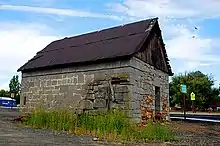 Many Basque immigrants came to Jordan Valley, starting around 1889 with the arrival of José Navarro and Antone Azcuenaga. Local oral history claims that before long, the Basques comprised around two thirds of the population of the town.[11] A pelota court, known as the Pelota Fronton, was built in 1915, and still stands as a historic landmark.[12] The Basques also constructed several sandstone buildings, including three boarding houses,[13] and (with the help of local Irish immigrants) the St. Bernard's Catholic Church, which can still be seen today.[14] Basque immigration to the area slowed with the passing of the Taylor Grazing Act of 1934, which favored cattle ranching over sheep, the Basques' preferred livestock.[6]