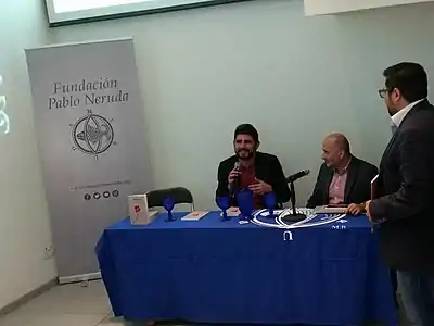 Between 2007 and 2017, he began to give lectures[9] and workshops on both subjects in several universities and institutes in Chile,[10] mainly in Santiago, Talca[11][12] and Valdivia.[13] Besides this, he participates in seminars and congresses in the area, among which Primer Encuentro Nacional de Escritores Gabriela Mistral stands out, in Los Andes,[14] and Tercer Encuentro Internacional de Historia y Literatura Araucanía 2017 of The University of la Frontera, in Temuco.[15]