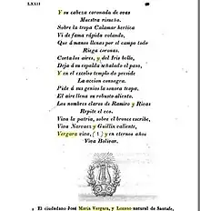 José Maria Vergara y Lozano de Peralta (1792-1857) was a Colombian major general and hero of Independence of New Granada and Gran Colombia, Deputy for casanare in the Congress of Angostura and diplomat of Colombia in London representing the South American country in the Congress of Troppau.[1][2] Vergara fought many battles against the Spanish crown alongside Simon Bolivar, Francisco de Paula Santander and is considered as one of the major figures of the Independence of the South American colonies.[3]