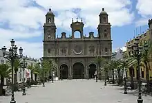 In Las Palmas Roca y Ponsa kept serving as lecturing canon by the cathedral and as catedrático by the local seminary. Another role he assumed was managing newly launched diocesan reviews.[16] He was gradually gaining recognition; in 1877 the Canary bishop José María Urquinaona nominated him head of the diocesan pilgrimage to Rome.[17] Roca was also assuming prestigious roles during local ceremonies.[18] His position in the Las Palmas hierarchy was enhanced with the 1879 arrival of the new bishop, José Proceso Pozuelo;[19] in 1881 Pozuelo nominated him to sort out the politically sensitive question of the local cemetery.[20] At the turn of the decades Roca launched a short-lived diocesan daily[21] and then a bi-weekly,[22] which he managed until 1888.[23] His militant articles aimed against the liberal regime cost him trial; in 1885 he was sentenced to living 3,5 years 25 km away from Las Palmas,[24] but it is not sure whether the sentence was enforced.[25] In 1890 Roca ascended to rectorship of Seminario de Canarias.[26]