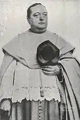 Until the late 1890s Roca y Ponsa was known locally and appreciated in Catholic circles of Las Palmas and Sevilla for his unyielding, well-delivered sermons.[119] It was the 1899 Sancha–Spínola controversy which catapulted him to nationwide notoriety; Traditionalist dailies saluted him as righteous Christian,[120] while progressist papers ridiculed him as reactionary relic.[121] The issue was formally brought before the Vatican; the pronouncement of the Extraordinary Congregation for Ecclesiastic Affairs, which somewhat ambiguously sided with Sancha,[122] was welcomed with relief in governmental circles;[123] also the regent Maria Christina spoke out.[124] The debate demonstrated that Roca was not isolated among the Spanish clergy, and at one point it seemed that the episcopate was uncertain about the way forward.[125] However, in the following decades the Church opted for a moderate political strategy; Roca's defeat was sealed by another official Vatican pronouncement of 1911; it stated that though doctrinally correct, his writings were not official political recommendations for Catholics.[126] Since the 1910s Roca remained a champion of Catholic virtues only for extreme right-wing groupings like Integrists or Carlists.[127]