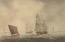 On his return to England he published a volume entitled Views in the Ionian Islands, and from then on devoted himself to art, and especially to painting marine subjects and naval engagements. He exhibited many pictures at the Royal Academy, the British Institution, and the Society of British Artists, and obtained a great reputation in his particular field. In 1825 he was elected a member of the Society of British Artists, and in 1828 was appointed marine painter to H.R.H. the Duke of Clarence, Lord High Admiral of England and future King of England, William IV.[1]