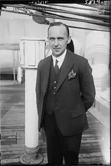 After his release he helped re-organise Sinn Féin in Belfast. He was selected as a candidate for the party in the 1918 general election for Mid Antrim. Though unsuccessful he polled 2,791 first preferences and saved his deposit.[6] He served on the Commission of Inquiry into the Resources and Industries of Ireland which had been set up by the First Dáil in 1919.[7] From October 1921 to November 1922 he served as Consul General of the Irish Republic to the United States in New York City.[8] He disposed of his business in Belfast at this time. One of his chief roles was to combat propaganda from Britain unfavourable to Sinn Féin and the IRA. When the Anglo-Irish Treaty was signed he was very cautious in forming an immediate public opinion on it though was nervous about splits in the wider organisation.[9] After the 1922 general election, and the arrival of Professor Timothy Smiddy as an accredited Ambassador in Washington, he was informed that he no longer held any recognition in the eyes of the US Government and so he returned home to Ireland.[10] His family had at this time moved to Dublin and they set up home at Harold's Cross, never returning to Belfast. The Irish Civil War had then commenced and he formally tendered his resignation to the Free State Government.