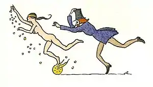 Joseph Hémard, a popular French book illustrator, was born in Les Mureaux, France, a small town on the Seine, northwest of Paris, on 2 August 1880. He died on 9 August 1961 in Paris.[1] He was a prolific artist. During the early years of the 20th century he published cartoons and comics in illustrated newspapers like Le Pêle-mêle or Le Bon Vivant. He also designed costumes and sets for several operas, patterns for printed textiles, bookbindings, posters and even a facade for a bar in the 1925 Paris Exposition of Decorative Art.[2] His lasting fame, however, lies in his book illustrations – always distinctly French in character and often erotic – which he produced for a great number of titles including many classics of French literature such as Le Malade Imaginaire (1920), Gargantua et Pantagruel (1922), Jacques Le Fataliste (1923), Cyrano de Bergerac (1927), and Aucassin et Nicolette (1936).[3]