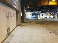 The scene where Kromelis was lit on fire on lower Wabash avenue.[13] Burn mark visible on garage door.