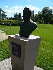 Later that summer, seventeen Oleskiw families led by Cyril Genik, and nine who had left on their own from Bukovina, also settled in Manitoba in the Stuartburn district. The first representatives of the intelligentsia – Cyril (Kyrylo) Genik, Ivan Bodrug, and Ivan Negrich – guided contingents of Dr. Oleskiw's settlers to Canada in 1896 and 1897.[9] Genik preferred Stuartburn, a district not recommended by Oleskiw; as it was close to the large Mennonite settlement near Gretna, and commercial farms in North Dakota and Minnesota, where those Ukrainians who needed cash might earn some extra money. Fifteen families from Galicia settled in an area recommended by Oleskiw, 5 miles (8.0 km) northwest of Dauphin, Manitoba. As the Riding Mountains resembled the Carpathian foothills, some families also found their way into this area.[10]