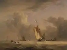 Between 1820 and 1829, Stannard exhibited works at the Royal Academy and the British Institution in London, showing eight works at the British Institution from 1824 to 1828 (Breydon, looking towards Yarmouth; Mundesley Cliffs, looking towards Cromer; A View near Norwich; Breydon—Morning; On the Norwich River; A Marine View; Gorleston Pier—Pilot Boats Going Off and Fresh Breeze, Lowestoft Roads).[42] He was influenced by the work of earlier Dutch artists, whose works he studied and copied during a visit to Holland in 1821 that was perhaps inspired by a similar visit by his future wife and her father in 1820.[19][23]