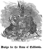 In 1849, Roseanna Revere gave birth to Frances Jane Revere. The same year, Revere published his first autobiographical book, titled A Tour of Duty in California: Including a Description of the Gold Region: and an Account of the Voyage Around Cape Horn; with Notices of Lower California, the Gulf and Pacific Coasts, and the Principal Events Attending the Conquest of the Californias.[17] It was edited by Joseph N. Balestier, a U.S. consul of Southeast Asia, who was his uncle by marriage, though Balestier refers to Revere as "my friend" in the foreword.[20] The book includes illustrations and lithographs by Revere as well as his original submission for the Great Seal of California.[1] Revere dedicated the book to John Y. Mason, secretary of the Navy 1844–1849, stating "[his] able and upright discharge of his public duties has won for him the respect and applause of his countrymen."[20] The memoir was advertised in the Boston Evening Transcript, the Charleston Courier, the Baltimore Sun, The Living Age, The United States Democratic Review, and the Richmond Enquirer. The Boston Evening Transcript heralded the novel for vividly describing California as "the new land of promise."[1]