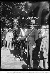- ↑ For movie footage of Lemonora winning the Grand Prix and Watson with his horse in the winner's enclosure, see British Pathe; you tube Item title reads: "World's Richest Racing Prize. "Lemonora" wins Grand Prix for Mr "Lucky" Watson. Paris, France. We see people milling about and a lot more sat in the stands. L/S of the horse race, we see them coming round the bend and racing up the track. M/S of the jockey on "Lemonora" after the race, M/S of Mr Watson who takes his top hat off to the camera, he holds the horses reins"