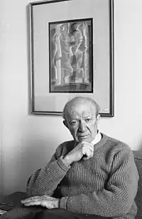![]() Joseph Wolins in his Westbeth apartment (artist's residence on lower West side of New York City) with one of his pastel works on paper, taken by his son John Wolins, 1983. | |