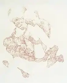 Taylor uses diluted ink washes to create narrative drawings on very large, unframed pieces of paper. The subject matter of her work deals with psychological traces of childhood and adolescent memories. The 2004 SECA Art Award exhibition catalogue describes her work thus: