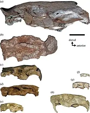 6. 1 2 3 Rinderknecht, A.; Enrique, B. T.; Ubilla, M. (2011). "New genus of giant Dinomyidae (Rodentia: Hystricognathi: Caviomorpha) from the late Miocene of Uruguay". Journal of Mammalogy. 92 (1): 170, 176. doi:10.1644/10-MAMM-A-099.1. S2CID 86683915.