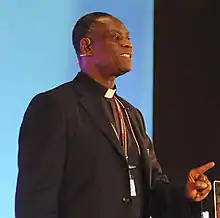 Idowu-Fearon served on the 2003–04 Lambeth Commission on Communion, "which considered worldwide Anglican unity in response to divisive debates on homosexuality".[20] In 2004, he was selected as a panelist on "an October 2004 public discussion in London, sponsored by the Pew Research Center's Forum on Religion and Public Life, dealing with issues affecting the Anglican Communion."[22] In 2005, he was chosen as a member of the third "Building Bridges" seminar held at Georgetown University in Washington DC.[23]