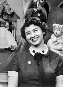 Carey was partnered with Fred Rogers who would act as puppeteer of various puppets who would dance along to 68 songs which he wrote and for which Carey wrote the lyrics. Carey joined ASCAP in 1955 and she and Rogers produced such songs as "Goodnight God," "It's Morning," and "Why Hi, Don't I Know You?" — the theme song for her program. Carey once remarked on their collaboration, "He would make me very angry because I'd labor over my lyrics and he would sit at the piano and what took me four hours, he would do in four minutes." Carey wrote the lyrics to "Tomorrow," which Rogers sang at the end of each Mister Rogers' Neighborhood episode until 1972.[1] The puppet characters included Daniel S. Tiger, Grandpère Tiger, King Friday XIII of Calendarland, his wife Queen Sara Saturday, X the owl, and Henrietta the cat.[2]