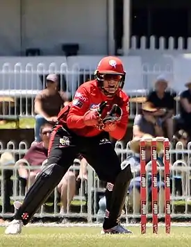 Dooley wicket-keeping for the Melbourne Renegades during a WBBL|07 match