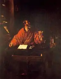 Juan Ribalta (1597 – October 1628) was a Spanish painter of the Baroque period. He was born and died in Valencia. His father, Francisco Ribalta, was a famous painter, active in the style of Caravaggio. Some sources said he was born in Madrid and later moved to Valencia. His mother Inés Pelayo died in 1601. Juan's works and style are similar to that of his father. He later painted Saint Sebastian at the Valencia Cathedral in 1616, later the small Adoration of the Shepherds (now at the Museo de Bellas Artes de Bilbao) and St. Peter, he also painted portraits including the poet Gaspar de Aguilar.