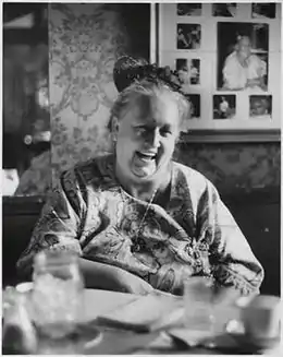 Called "flamboyant", Musson had a reputation for being kind to animals and the poor, and sometimes rude to her patrons.[1] Drinking frequently, she often argued with and insulted her staff and customers,[3] and was involved in a number of physical altercations.[1][4] Despite all this she was well-liked.[1] While Musson was careless with money and the management of her restaurants, they gained prominence and popularity for their atmosphere and generous portions.[1]