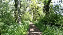 Jubilee Wood is located in Malden Rushett in the Royal Borough of Kingston upon Thames in London. It is divided into two parts, separated by an electricity sub-station. They are part of the 22 hectare 'Sixty Acre Wood and Jubilee Wood' Site of Metropolitan Importance for Nature Conservation, and the two hectare eastern wood, which is the only part which is publicly accessible, is also a Local Nature Reserve.[1][2][3][4][lower-alpha 1]