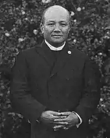 When the founder of a Māori church, Tahupotiki Wiremu Ratana was delayed by a dock strike in Japan in 1924 Nakada found the group suitable accommodation. Ratana had many similar ideas to Nakada, and in particular: "...thought that both Maori and Japanese were among the lost tribes of Israel..."[17] and a strong bond was formed, which saw Nakada travel to New Zealand to co-conduct the second formal opening of the church's Temple at Ratana Pa.[18][19]
