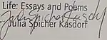 - Julia Spicher Kasdorf. Poets.org. http://www.poets.org/poet.php/prmPID/362