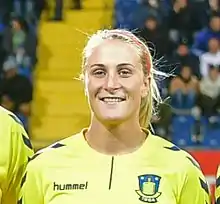 Trustrup Jensen played for B73 Slagelse until 2009, when she joined Brøndby IF.[1] Good form in season 2010–11 led to Trustrup Jensen being named Denmark's Young Player of the Year. She scored a goal in the 3–2 Danish Women's Cup final win over rivals Fortuna Hjørring.[2] She quit football in 2014 to travel round the world, but soon came back to her career with Brøndby.[3] In June 2015 she scored an injury time winning goal in the Cup final against Fortuna, as Brøndby won 2–1.[4]