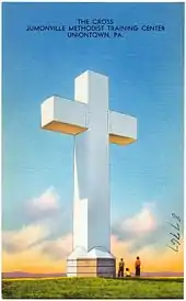 Jumonville contains a 60-foot-tall cross that stands on top of Dunbar's Knob (elevation 2480 ft). It is visible from seven counties, three states, and fifty miles on a clear day.[1]