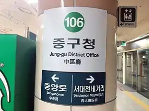 | Revised Romanization | Junggucheong yeok | ||||||||||