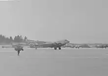 In April 1939, the RLM asked Junkers for a further development of the Ju 90 for military transport purposes.[3][7] The Ju 90V5 and V6 were the prototypes of this military design. They got a new wing with a straight inner section leading edge, of greater span (19%) and area (11%). The landing gear was strengthened with twin main wheels and the fins were more rounded, lacking the characteristic horn balance nick of the earlier models. The windows were replaced by 10 small portholes a side. The Ju 90 V5 flew first on 5 December 1939. A special feature of both the V5 and V6 was a powered boarding ramp in the floor of the rear section of the fuselage for loading cars and larger cargo freight.[7][9] This Trapoklappe ramp, when lowered, was powerful enough to raise the fuselage to the horizontal flying position. Both aircraft were retroactively fitted with the much more powerful, unitized Kraftei-mount 1,200 kW (1,600 hp) BMW 801MA radials, with the first suffix letter "M" signifying the initial Motoranlage format of unitized powerplant installation design promulgated by the RLM. Ju 90s were also used as tugs for heavy gliders.