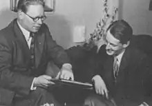 Jussi Saukkonen (left) with Juha Rihtniemi, a party colleague, in 1951.
