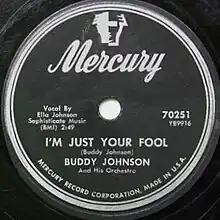 "Just Your Fool" (or "I'm Just Your Fool" as it was first titled) is a rhythm and blues-style song written and recorded by the American jazz and jump blues bandleader/pianist Buddy Johnson and His Orchestra in 1953.[1] Called an "R&B anthem", the song has a big-band arrangement and his sister Ella Johnson on vocals—her "delicate and deceptively sweet phrasing was ideally suited to ballads such as this".[1] "I'm Just Your Fool" became a Billboard R&B chart record hit, reaching number six in 1954.[2]